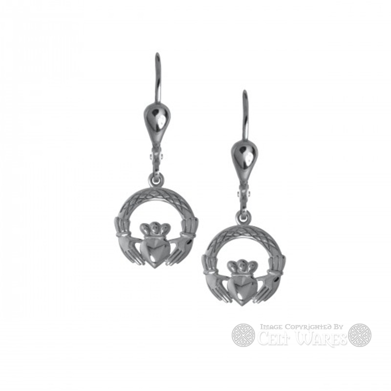 These wee Claddaghs are hung from ornate lever back earring hooks, for added security.