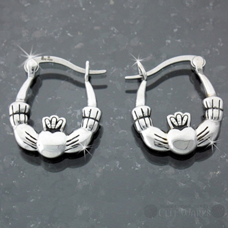 These double sided three dimensional Claddagh earrings are a classic design. The rounded shaping gives the appearance of a vintage design. These Claddagh earrings are made from Stainless Steel so the earrings themselves are as enduring as their message of Love, Friendship & Loyalty. ...Read more